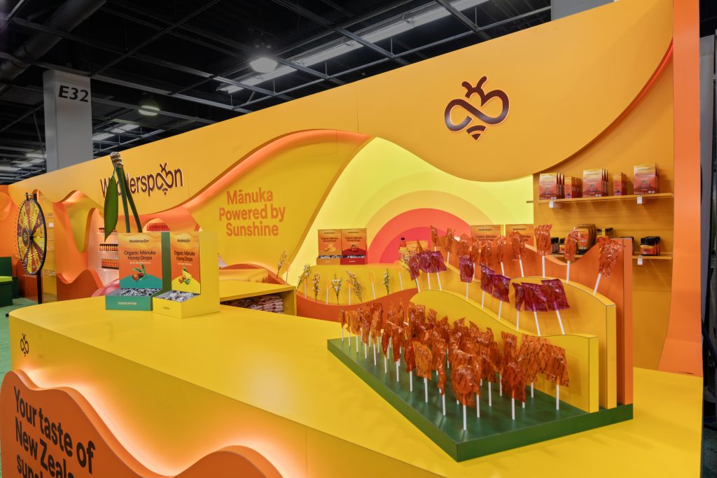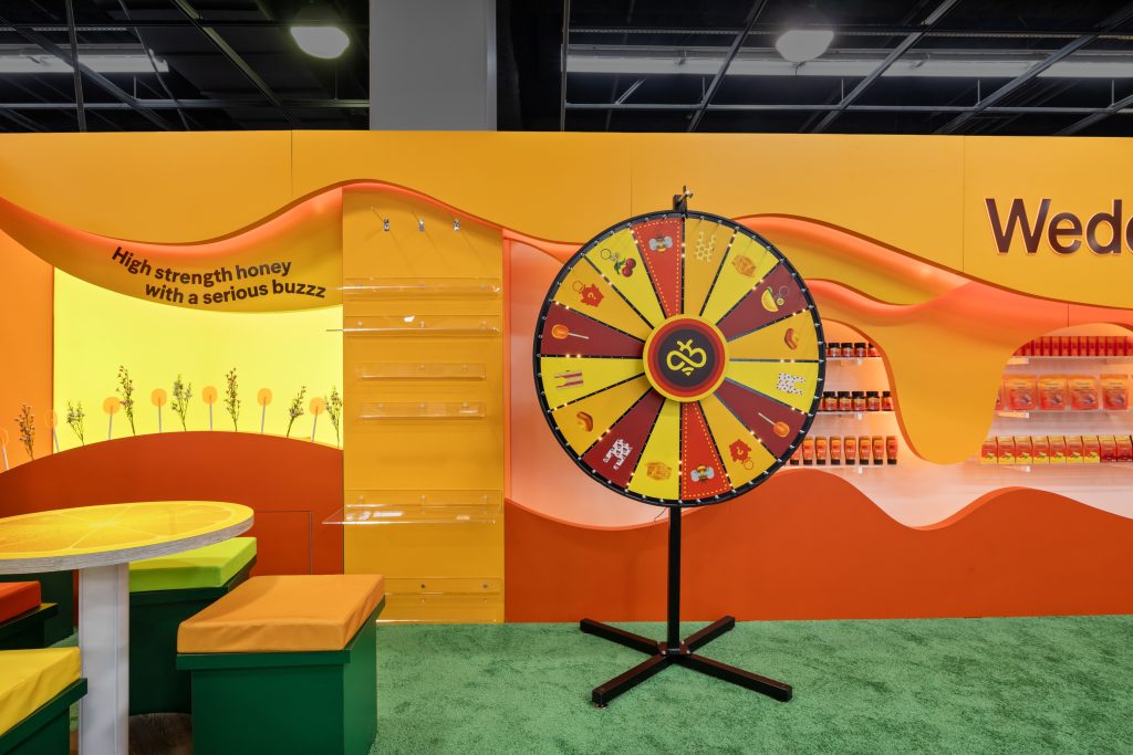 Projects like this are never the result of a single effort, and this one benefited from an exceptional group of collaborators. Thoughtfull Design, based in New Zealand, led the design and detailing, helping bring the rebrand to life in a physical space. Classic Exhibits handled the build of the primary structure, delivering a strong and reliable foundation. Matchless Builds out of Portland added a layer of personality and craftsmanship with the custom lollipops—both large and small—along with the cherries and honeycomb plinths that gave the booth its distinctive character. And Spinning Designs created the prize wheel, adding an interactive element that drew people in and kept the energy high.