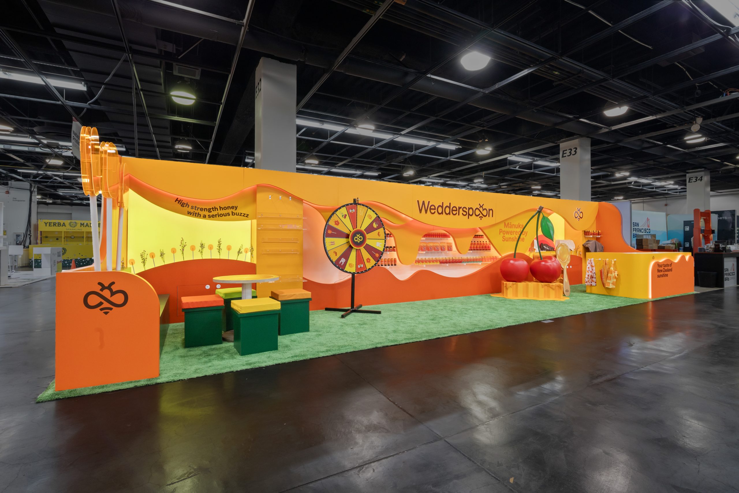 Held at the Anaheim Convention Center, Expo West is never short on energy—or competition for attention. Yet throughout the run of the show, the Wedderspoon booth consistently drew strong crowds. Attendees weren’t just passing through—they were stopping, engaging, and spending time in the space. The combination of bold visual elements and thoughtful detailing created an environment that invited curiosity and rewarded it.