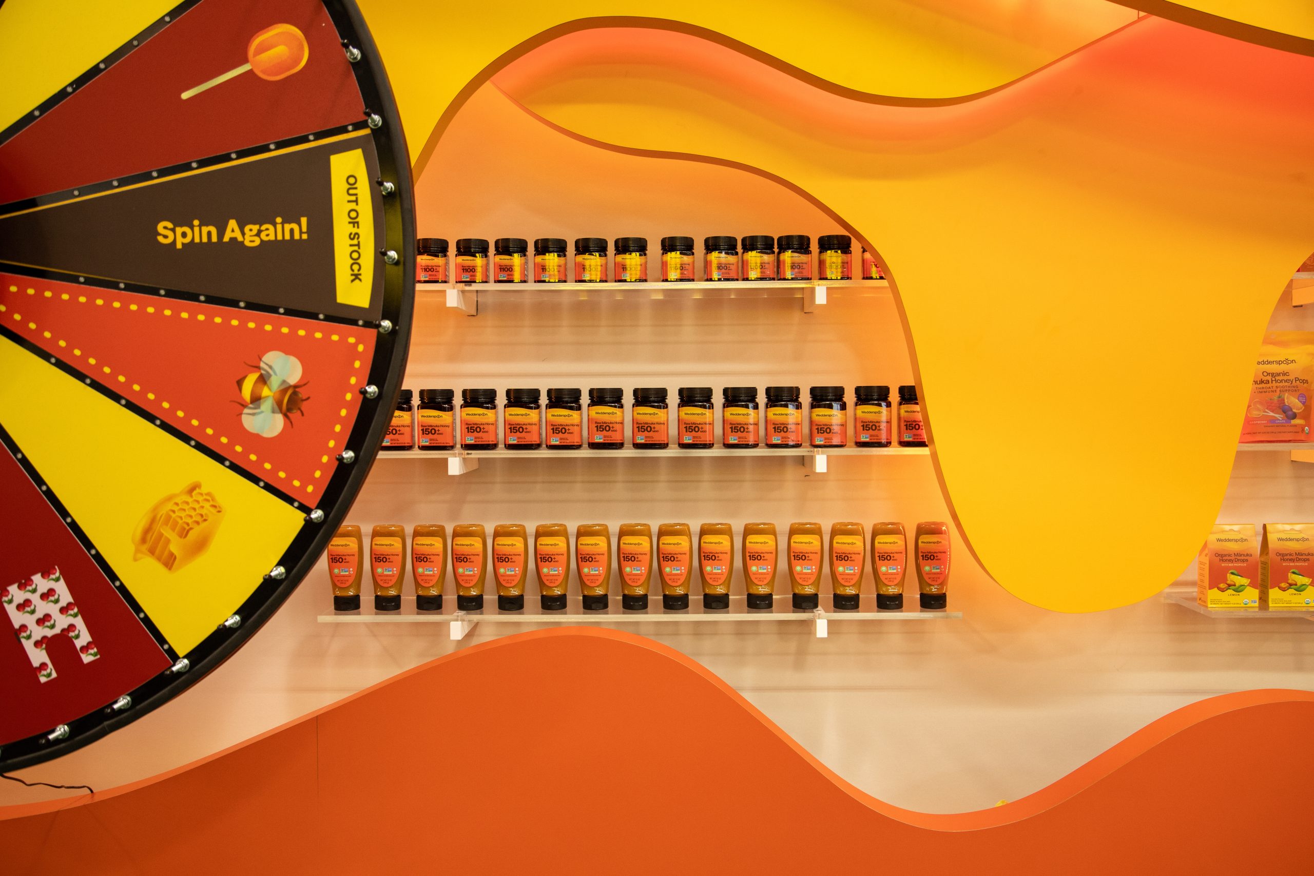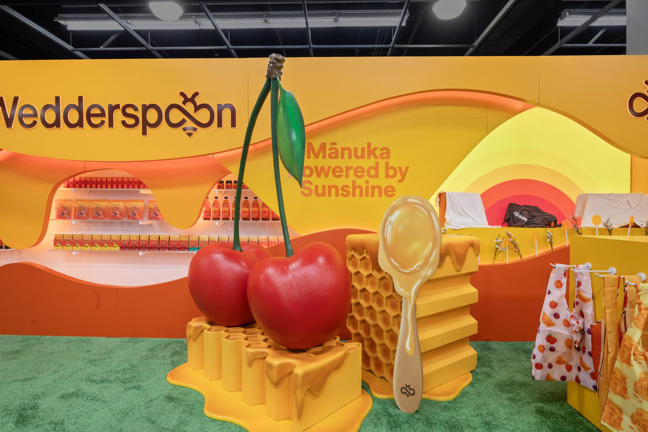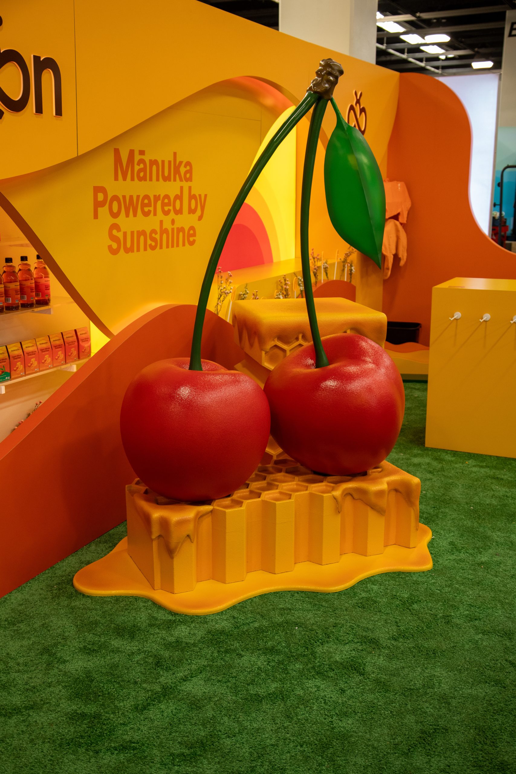 Projects like this are never the result of a single effort, and this one benefited from an exceptional group of collaborators. Thoughtfull Design, based in New Zealand, led the design and detailing, helping bring the rebrand to life in a physical space. Classic Exhibits handled the build of the primary structure, delivering a strong and reliable foundation. Matchless Builds out of Portland added a layer of personality and craftsmanship with the custom lollipops—both large and small—along with the cherries and honeycomb plinths that gave the booth its distinctive character. And Spinning Designs created the prize wheel, adding an interactive element that drew people in and kept the energy high.